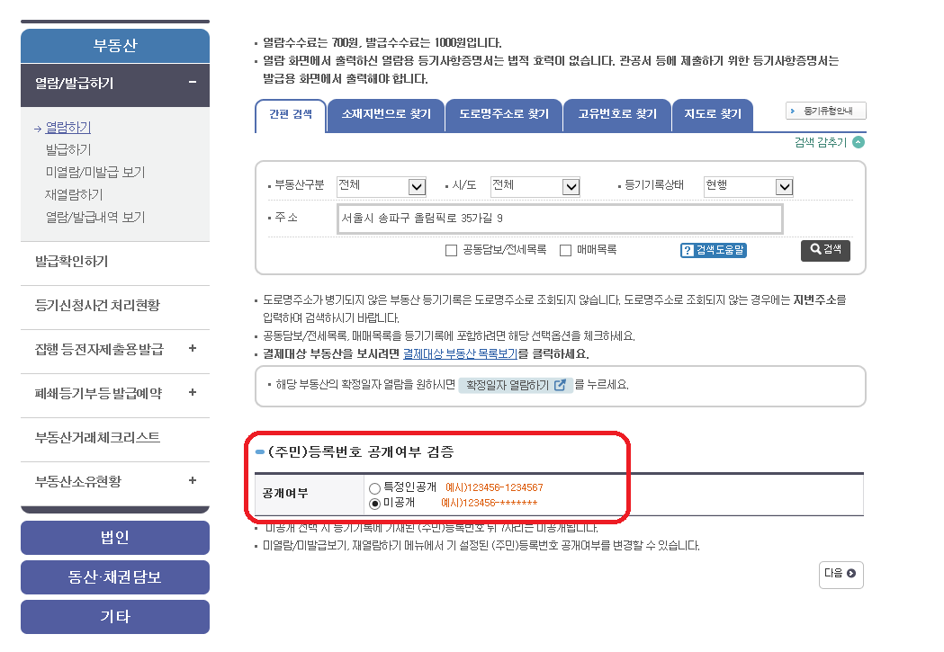 아래 주민번호 특정인 공개는 주민번호를 알아야 다음단계로 넘어갈 수 있습니다.